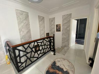 RDC : Un grand salon /salle à manger avec accès à la terrasse aménagée avec barbecue , une grande cuisine entièrement équipée ( lave- vaisselle, lave-linge,frégidaire, micro-onde ,cuisinière ……………..) avec accès directe à la terrasse sans vis-à-vis ,une salle de bain avec douche italienne, un hammam , un garage .